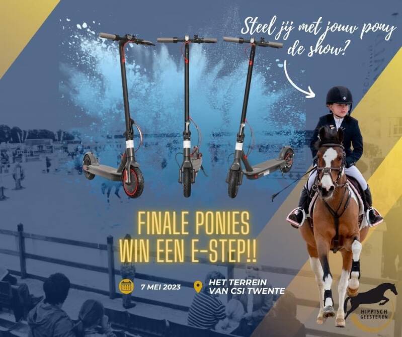 Je mag met maximaal 2 pony’s deelnemen tijdens de finale en je kunt maximaal 1 keer een E-step winnen. Mocht je met een pony flexibel starten, dan telt de hoogste klasse voor plaatsing van de finale.